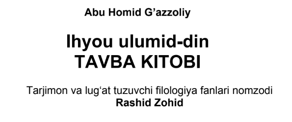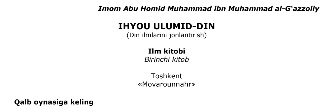 Qo’lyozmani o’qishKitob nomi: Riyozatun nafs (Nafs tarbiyasi);Muallif: Abu Homid G’azzoliy;Sahifa: 45 ta;