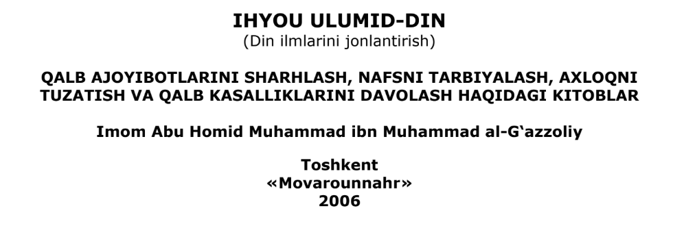 Qo’lyozmani o’qishKitob nomi: Ihyou ulumid-din;Muallif: Abu Homid Ga’zzoliy;Sahifa: 144 ta;