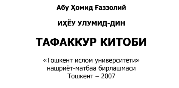 Qo’lyozmani o’qishKitob nomi: Tafakkur kitobi;Muallif Abu Homid G’azzoliySahifa: 31 ta;